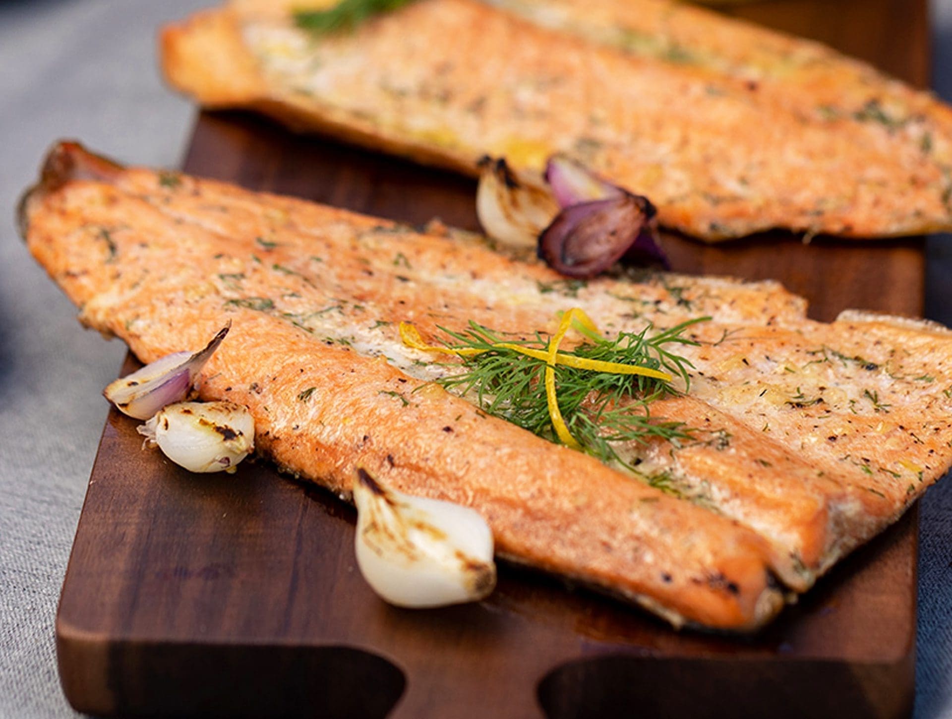 Oncorhynchus mykiss. Producto nacional. Salmones provenientes de piscicultura sustentable, artesanal y de baja escala de río.